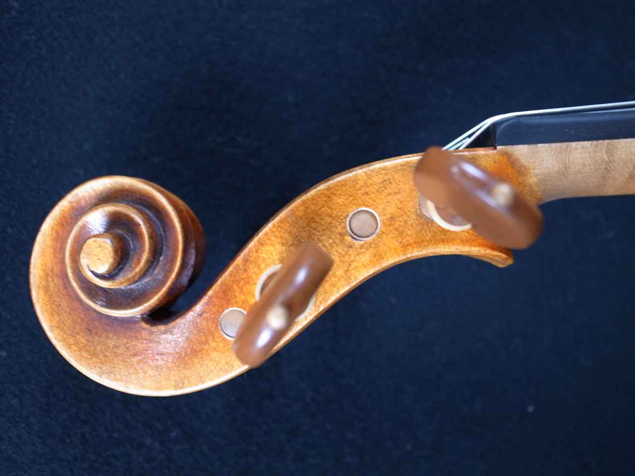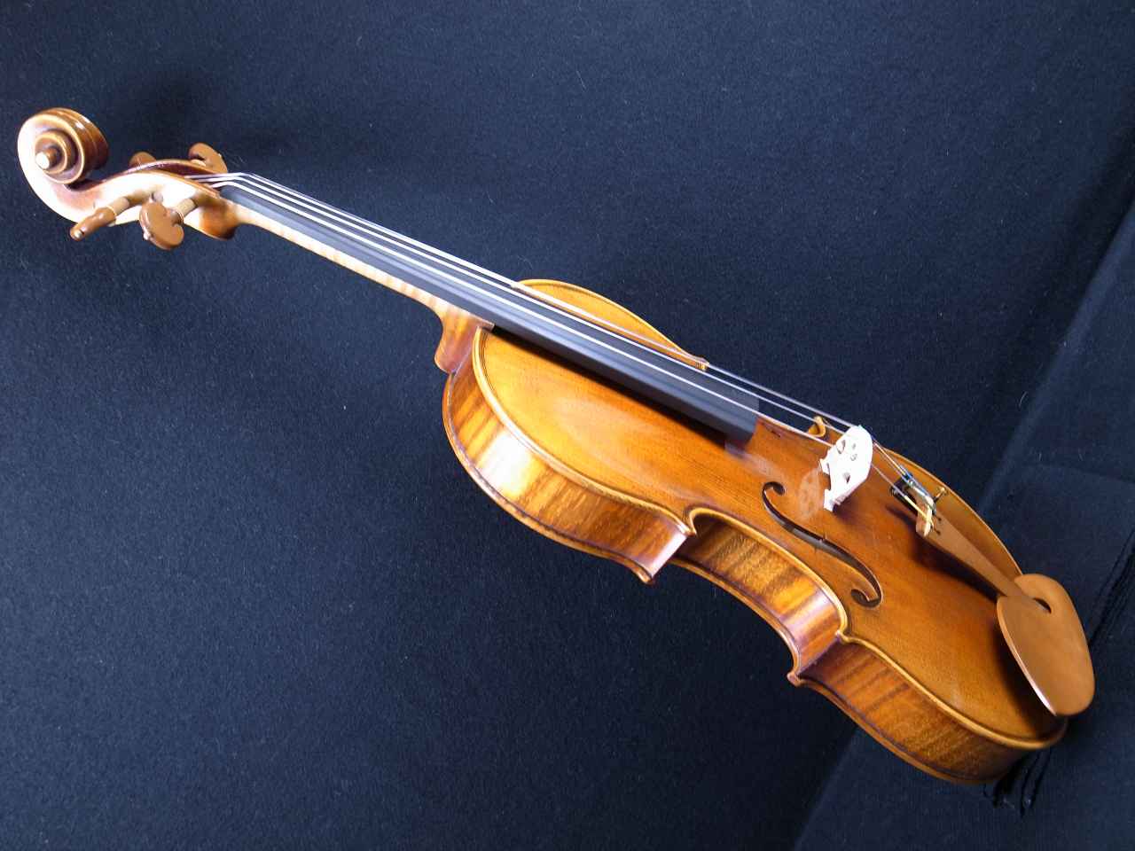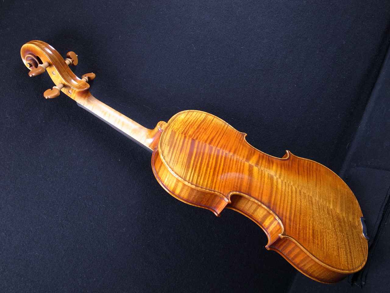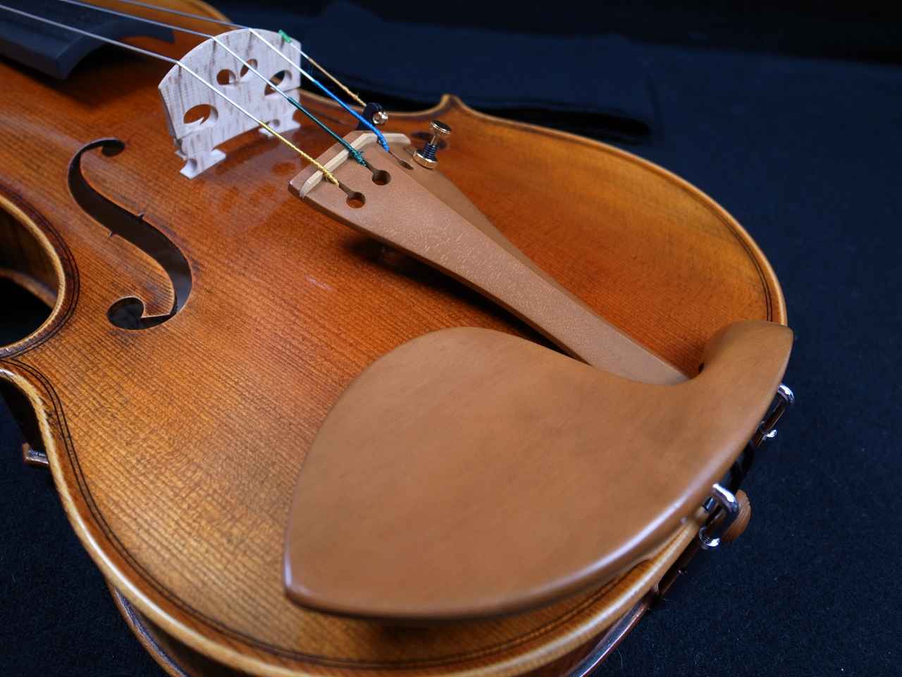 このバイオリンは黒檀のフィンガーボード、最高級ツゲ(ボックスウッド)のアゴ当て・ペグとテールピースを含んでいます。