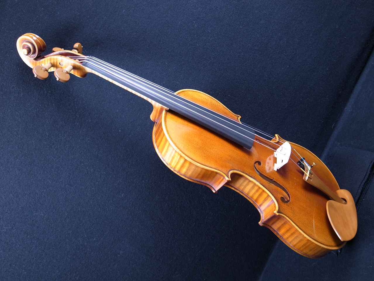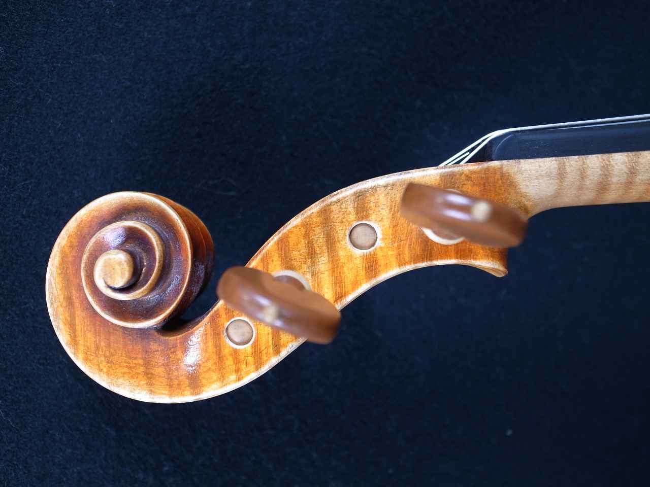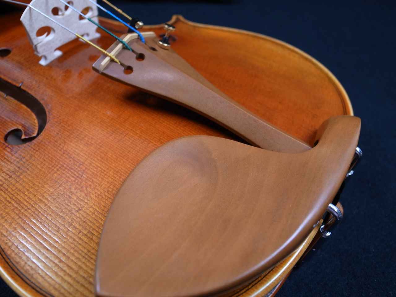このバイオリンは黒檀のフィンガーボード、最高級ツゲ(ボックスウッド)のアゴ当て・ペグとテールピースを含んでいます。