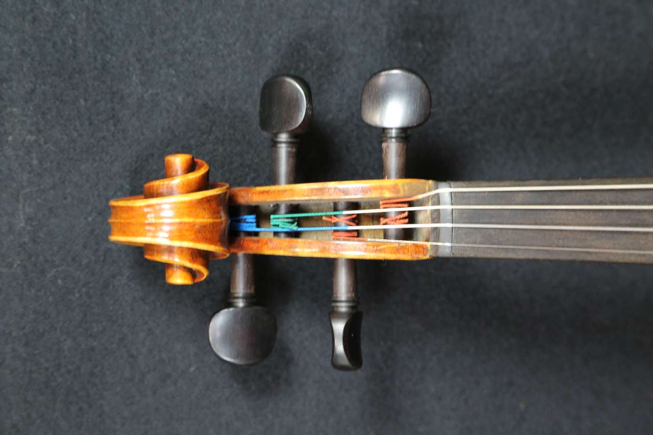 このバイオリンは黒檀のフィンガーボード、最高級黒檀材(エボニー)のアゴ当て・ペグ・テールピースを含んでいます。