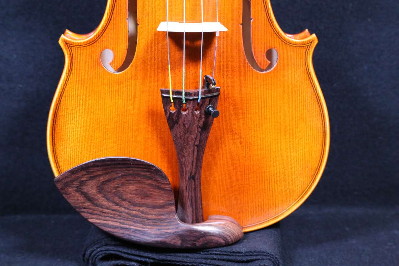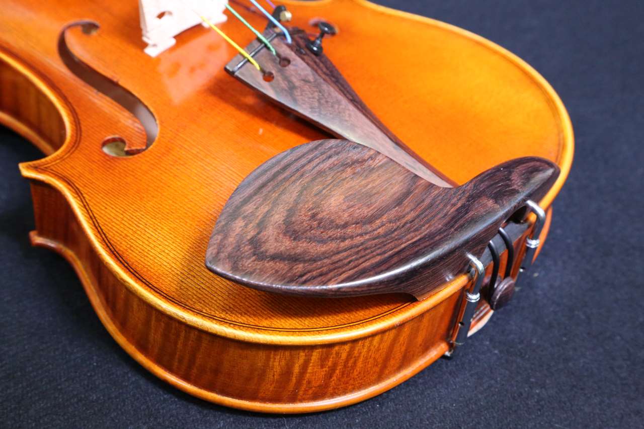 このバイオリンは黒檀のフィンガーボード、ローズウッドのアゴ当て・ペグとテールピースを含んでいます。