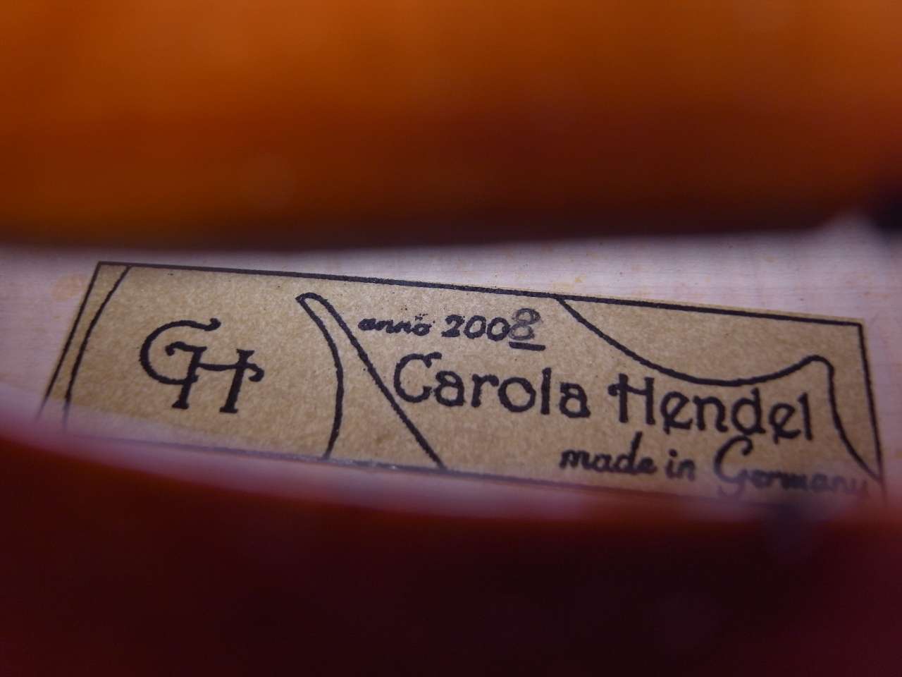 カローラ・ヘンデル工房ドイツ(Carola Hendel)が制作した202ガルネリモデルシリーズのアンティークフィニッシュのバイオリンです。