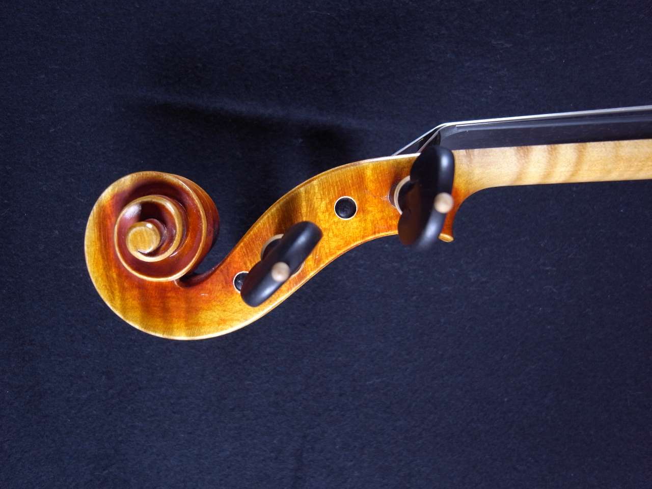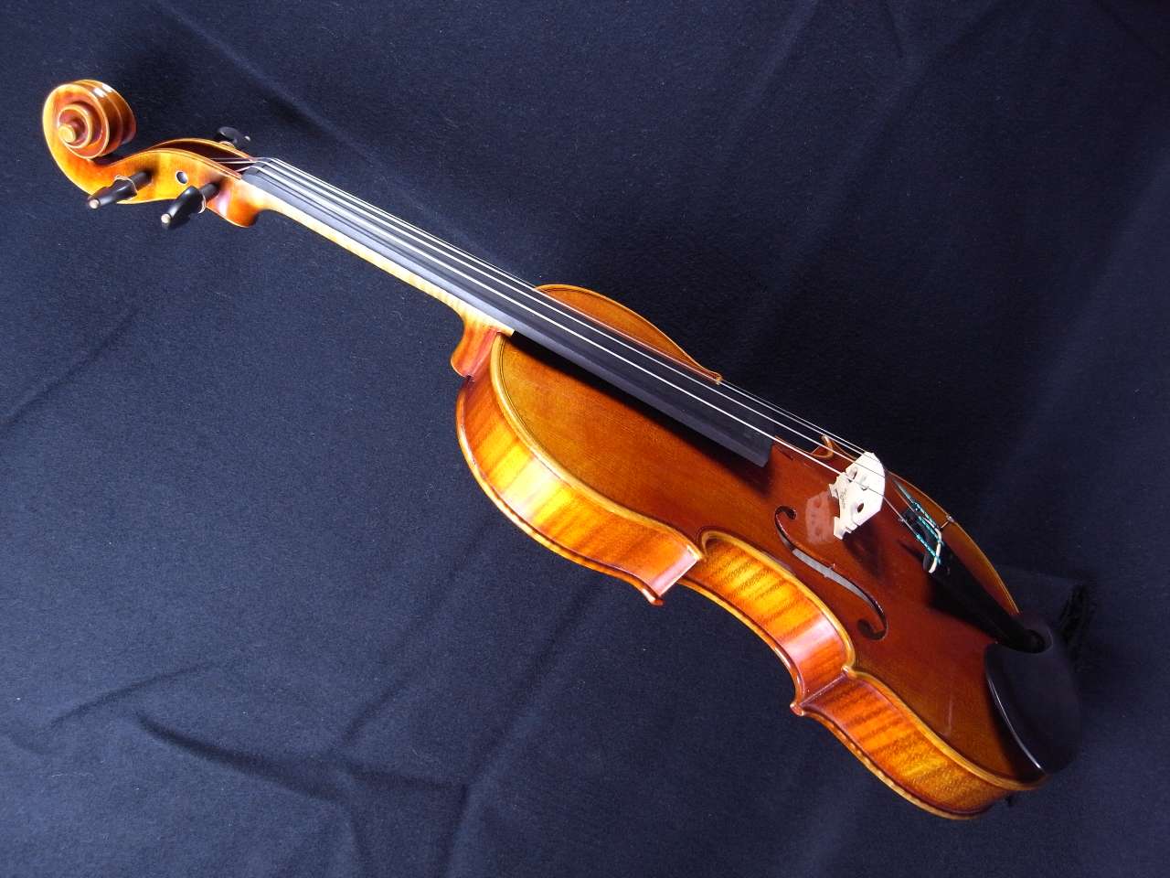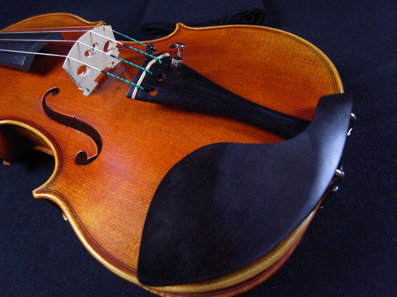 このバイオリンは黒檀のフィンガーボード、最高級黒檀(エボニー)のアゴ当て・ペグとテールピースを含んでいます。