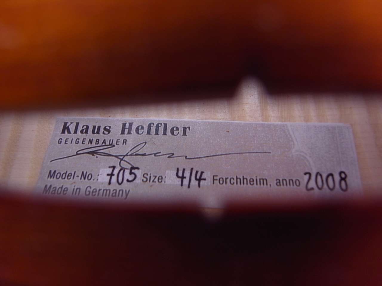クラウス・ヘフラー(Klaus Heffler)が監修した#705シリーズのバイオリンです。
